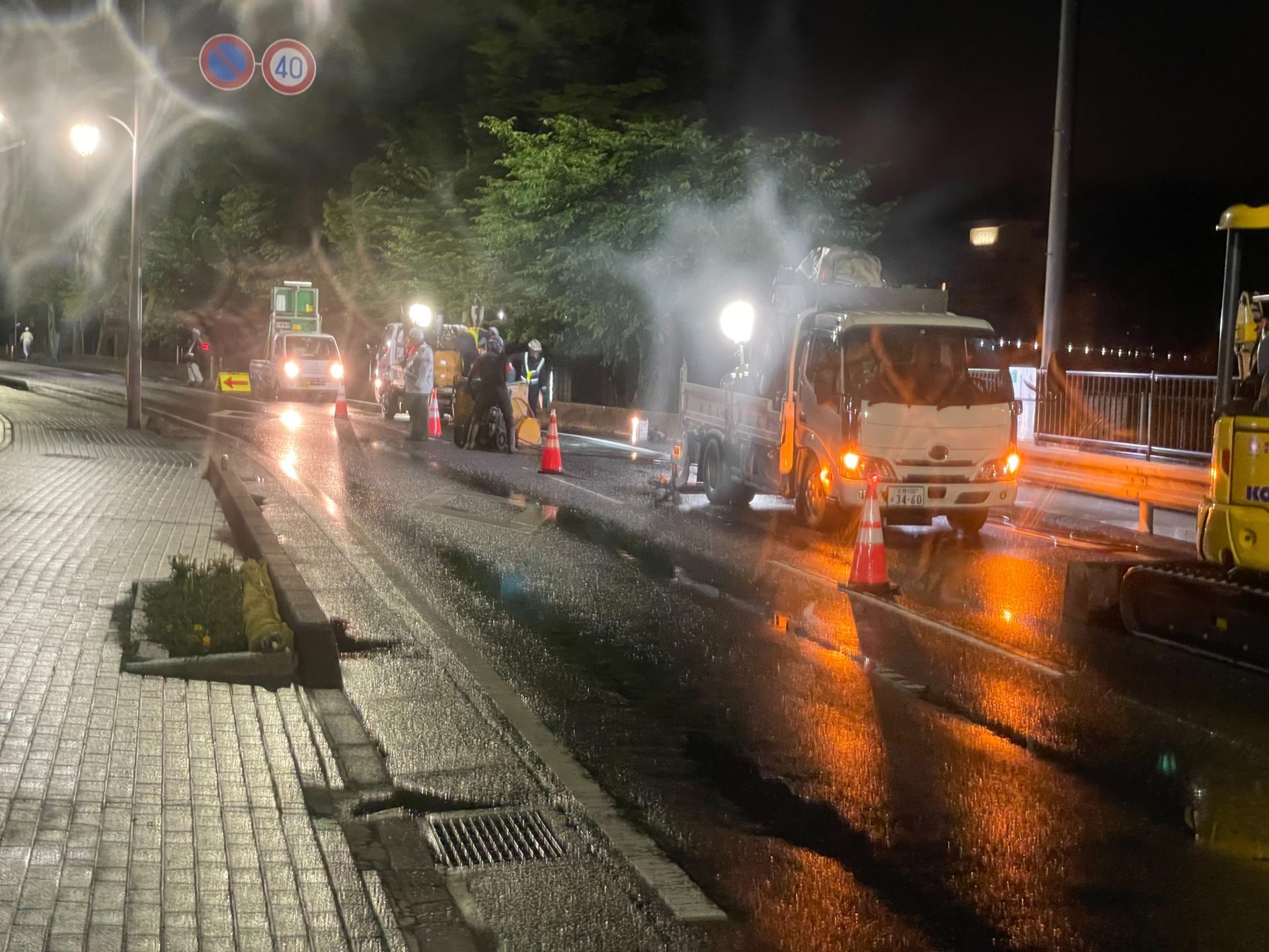 大津市唐橋付近、夜間規制しています